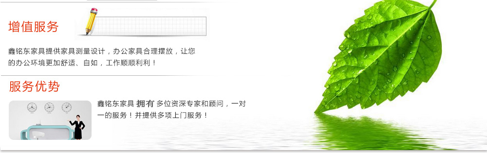 深圳市鑫銘東家具有限公司專業(yè)銷售各類辦公家具!產(chǎn)品涉及多種系列,如:班臺、班椅、屏風、會議桌、會議椅、辦公沙發(fā)、茶幾、辦公桌、文件柜、電腦桌椅、各式餐臺、餐椅、書柜等辦公家具。 鑫銘東家具擁有一批優(yōu)秀的家具設計、生產(chǎn)及營銷的專業(yè)人士和高素質(zhì)的管理隊伍。銘東家具以"先難后易"之戰(zhàn)略,在產(chǎn)品結(jié)構(gòu)、產(chǎn)品質(zhì)量及服務水平方面,均推陳出新,力求完善,精益求精。使我們的產(chǎn)品質(zhì)量保持在國內(nèi)外家具潮流的先進水平,力求滿足客戶的特殊需求。鑫銘東家具多年來致力于環(huán)保、實用家具的設計與開發(fā),集生產(chǎn)、銷售、服務于一體。本著"以人為本"的設計理念,大量開發(fā)符合人體工程學的各種產(chǎn)品,以"誠信為本"的質(zhì)量方針,真材實料,認認真真做產(chǎn)品,實實在在做人。鑫銘東家具更致力于創(chuàng)造"零維修率"的制造境界,實現(xiàn)"沒有維修的服務才是最好服務"的口號》了解更多